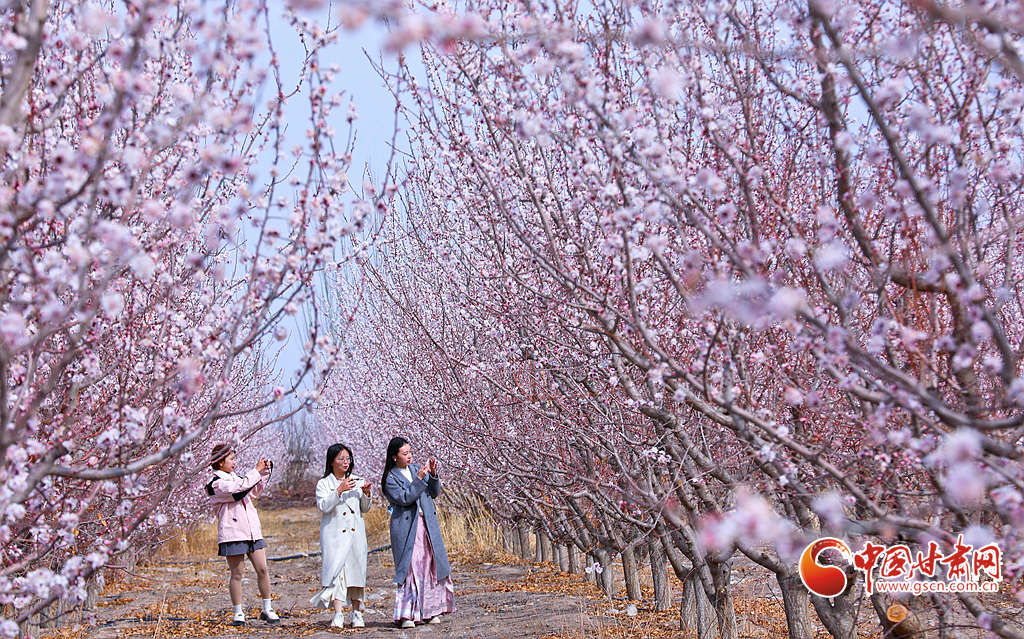 清明假期,甘肅省張掖市甘州區(qū)一珍珠油杏種植基地內(nèi)3000多畝杏花迎春綻放,給春日大地增添了一抹靚麗風景,吸引了2萬多名市民和游客前來踏青賞花。