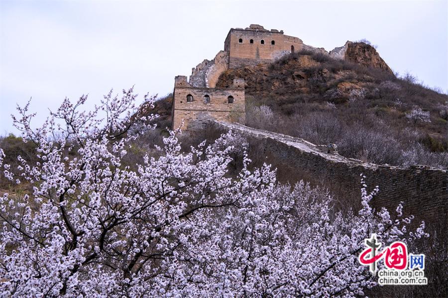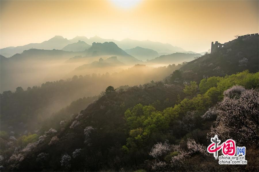 四月長城壯觀云海驚艷 金山嶺杏花共舞春風(fēng)