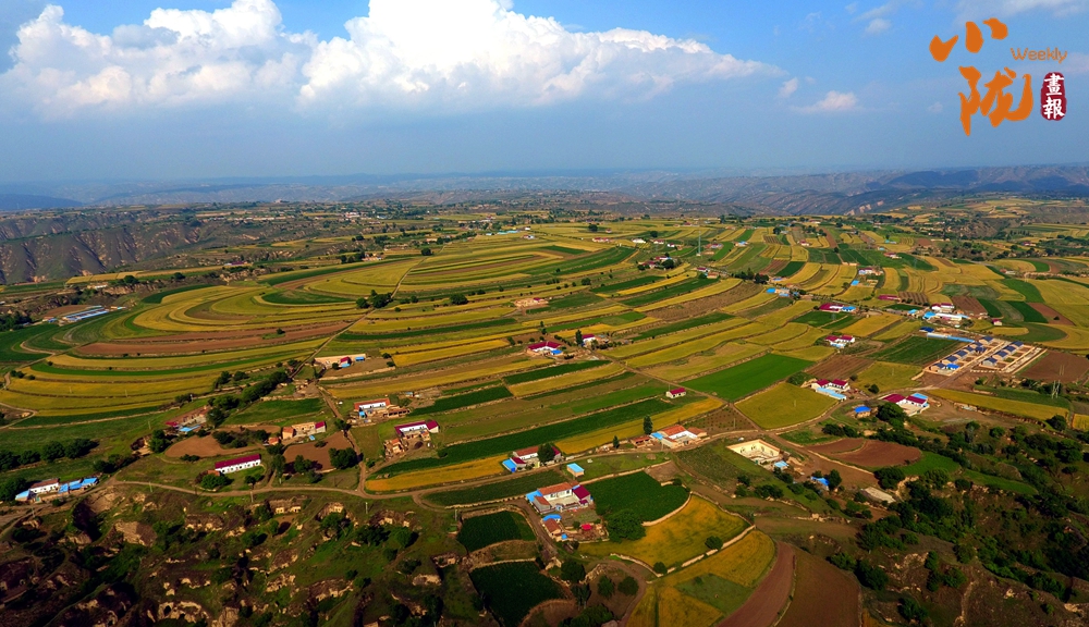 從高空俯瞰下去,在廣袤的大地上,丘陵被開(kāi)辟成了一層又一層的梯田,金黃的麥浪和嫩綠的秧苗鋪滿田間。