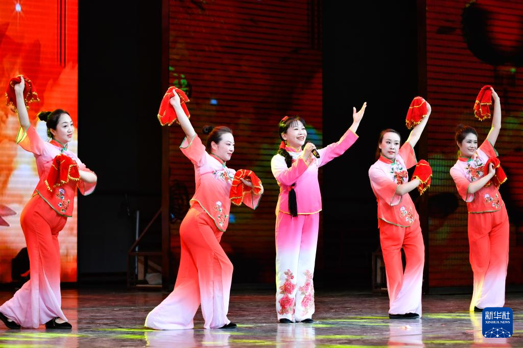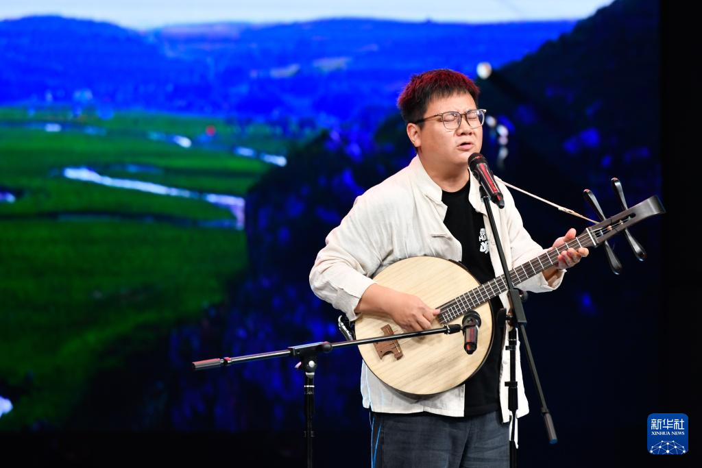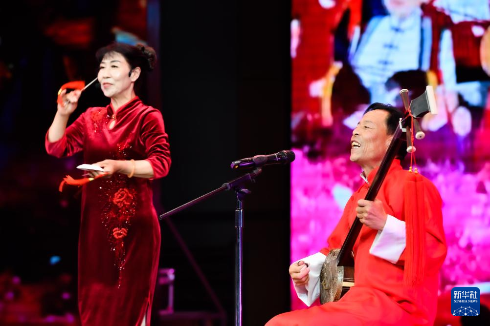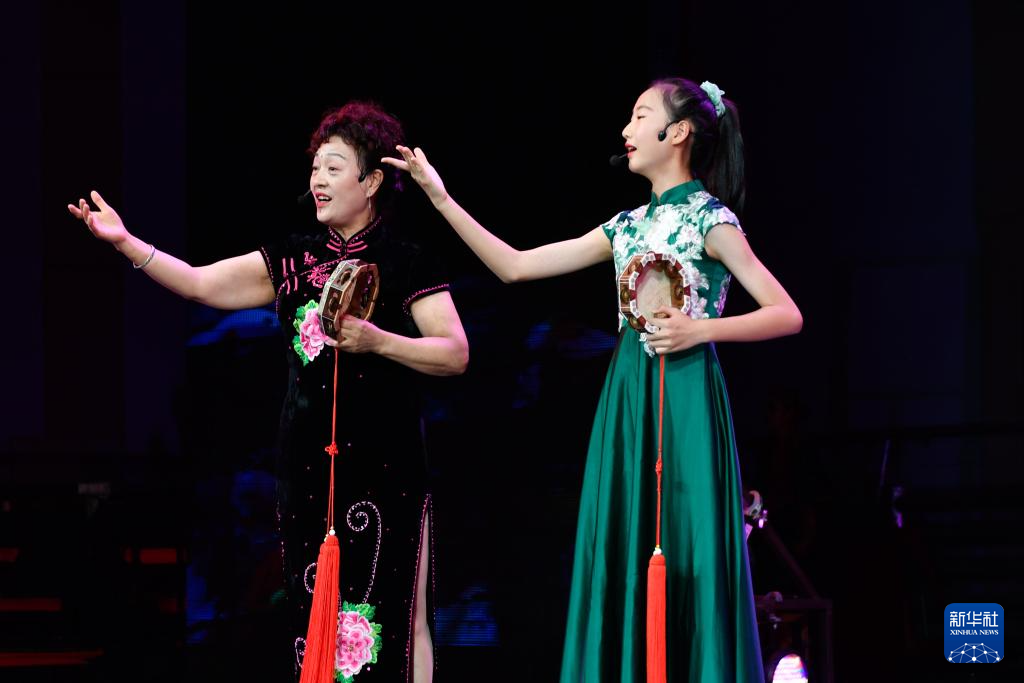 7月12日,演員演唱蘭州鼓子《奮楫篤行續(xù)輝煌》。新華社記者 郎兵兵 攝
