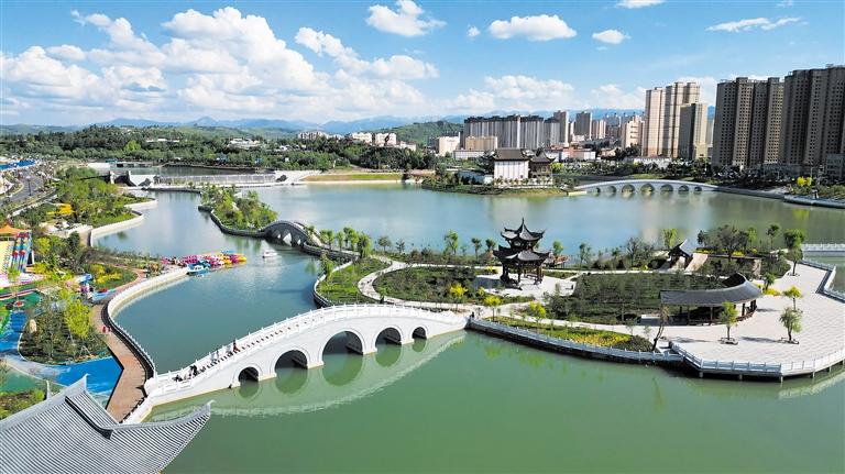 盛夏時節(jié),和政縣龍泉湖公園綠樹環(huán)繞,風光秀麗,藍天白云與碧綠的湖水構(gòu)成一幅美麗的生態(tài)畫卷。新建的龍泉湖公園集綠道、觀光、旅游等多功能于一體,成為居民和游客休閑娛樂的好去處。