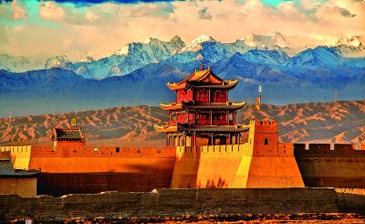 雄關(guān)六百載,長(zhǎng)城越千年??唇癯?,戈壁之上,嘉峪關(guān)關(guān)城的朱色城樓與終年皚皚的祁連雪峰交相輝映,歷經(jīng)風(fēng)霜久而彌堅(jiān);峭壁之巔,長(zhǎng)城第一墩矗立于此,腳下流淌的討賴河水澎湃不息;山脊之上,懸壁長(zhǎng)城形似凌空倒掛,氣勢(shì)雄偉。