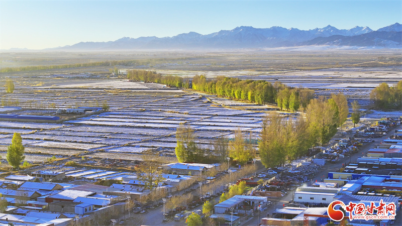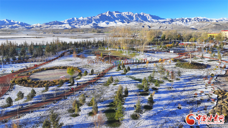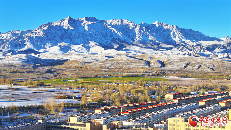 10月22日,雪后初晴的張掖市民樂(lè)縣,連綿起伏的祁連山被皚皚白雪覆蓋,整個(gè)縣城一片銀裝素裹,在晨曦的照射下,呈現(xiàn)出一幅多姿多彩、生態(tài)和諧的美麗畫卷。