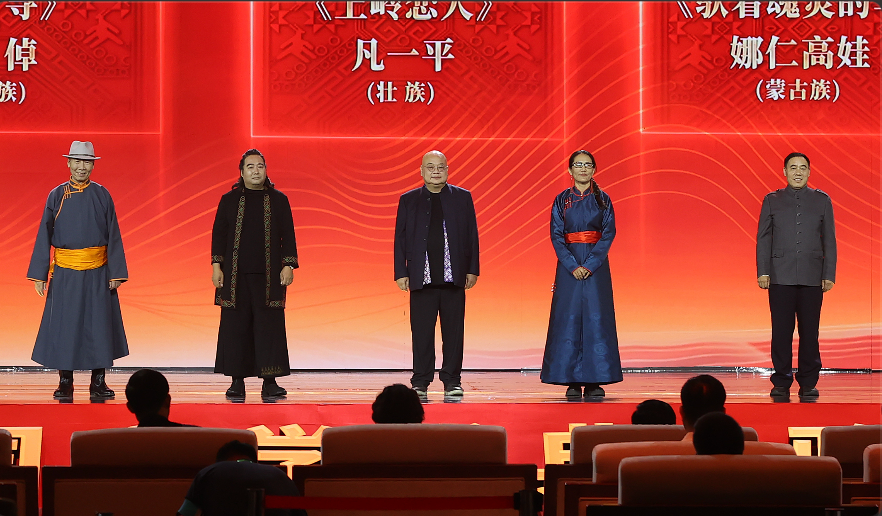 阿尤爾扎納、包倬、凡一平、娜仁高娃、少一領(lǐng)取第十三屆全國(guó)少數(shù)民族文學(xué)創(chuàng)作駿馬獎(jiǎng)中短篇小說(shuō)獎(jiǎng)