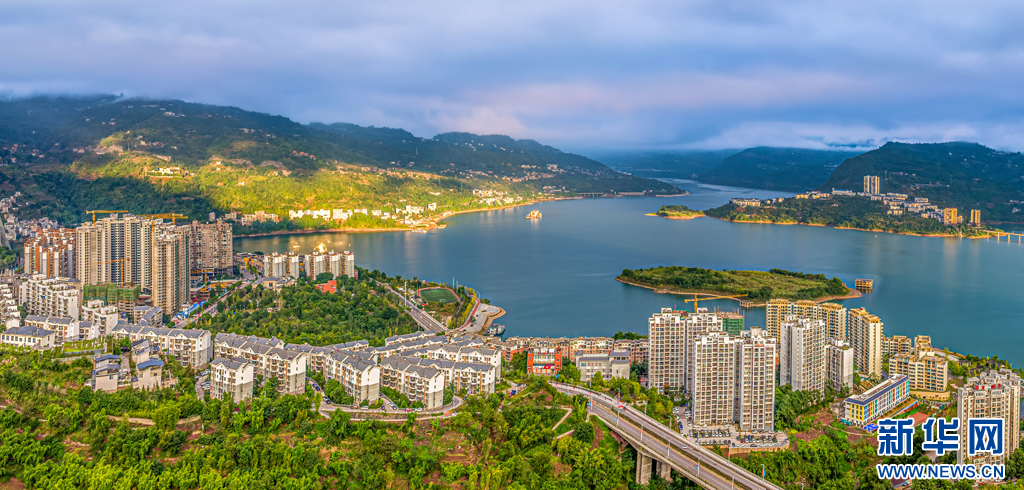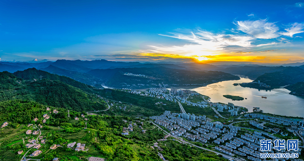 朝陽映襯下的江畔小城綏江,水清岸綠景美(10月23日攝)。新華網(wǎng)發(fā)(曾三東 攝)