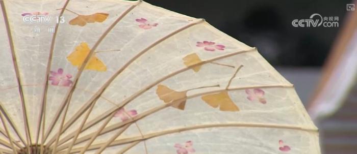 在最佳觀賞期來到村子里,游客朋友們還能看到和銀杏相關的非物質(zhì)文化遺產(chǎn)。這是已經(jīng)傳承了300多年的騰沖傳統(tǒng)非遺——油紙傘。這把傘在制作階段,就將銀杏葉放入了宣紙之間。打起油紙傘,就仿佛銀杏葉落在了傘上,充滿意趣。