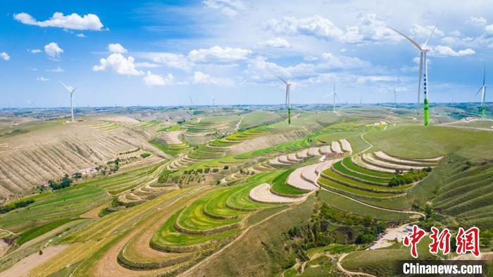 中新網(wǎng)蘭州11月26日電(高展 陳高鳳)在甘肅慶陽(yáng),有一座名為環(huán)縣的北方小城。境內(nèi)山脊層疊、溝壑連綿,山梁上,潔白的風(fēng)車與湛藍(lán)的天空交相輝映;山坡上,藍(lán)色光伏板與黃土地交織成獨(dú)特景致。這些美好“風(fēng)光”正源源不斷地轉(zhuǎn)化為清潔電能,也成為這座小城迎“風(fēng)”追“光”,撬動(dòng)新能源經(jīng)濟(jì)的堅(jiān)實(shí)底氣。