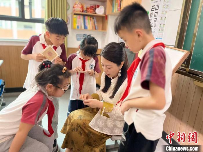 6月,國家級非物質(zhì)文化遺產(chǎn)代表性項目民間繡活(夏布繡)市級代表性傳承人吳婉菁正在給幾位學生展示夏布繡。(受訪者供圖)