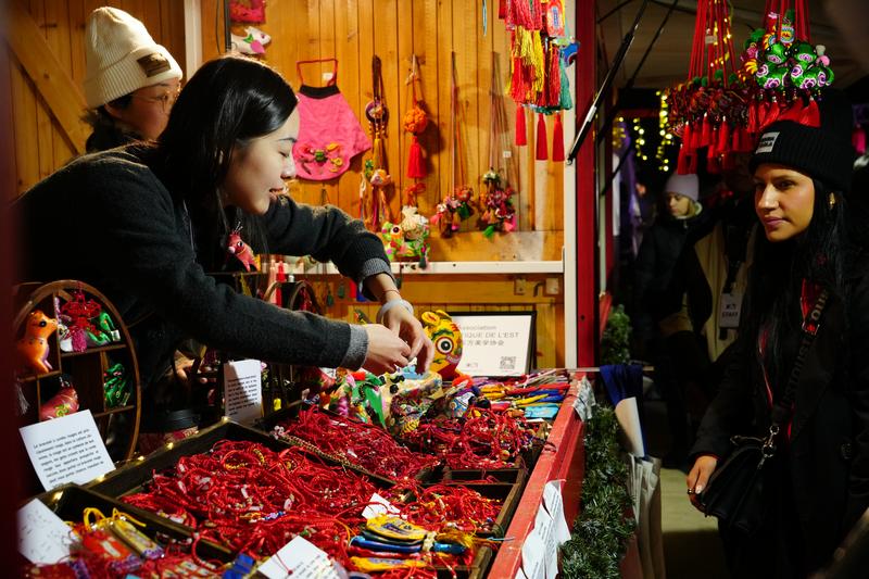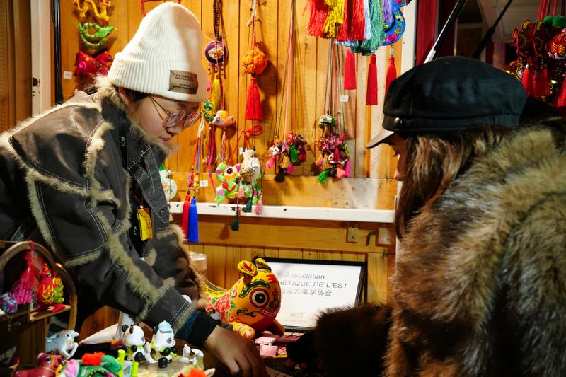 (法國(guó)巴黎圣誕集市上的慶陽(yáng)香包展位)
