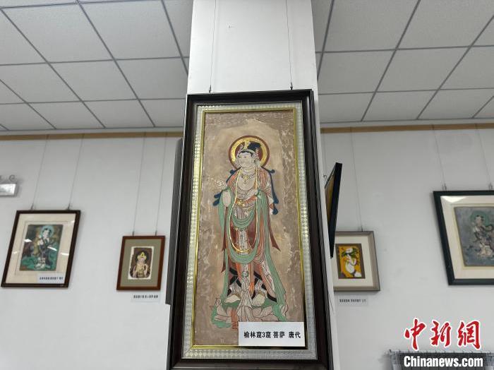 12月17日,由蘭州市七里河區(qū)委宣傳部、七里河區(qū)文體旅局聯(lián)合舉辦的“大漠孤陽(yáng)映彩霞 敦煌神韻美如畫”新時(shí)代文明實(shí)踐主題活動(dòng)暨敦煌巖彩畫書畫藝術(shù)展拉開帷幕。圖為展出的敦煌莫高窟壁畫題材巖彩畫。楊娜 攝