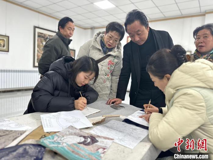 12月17日,由蘭州市七里河區(qū)委宣傳部、七里河區(qū)文體旅局聯(lián)合舉辦的“大漠孤陽(yáng)映彩霞 敦煌神韻美如畫”新時(shí)代文明實(shí)踐主題活動(dòng)暨敦煌巖彩畫書畫藝術(shù)展拉開帷幕。圖為繪畫愛(ài)好者現(xiàn)場(chǎng)學(xué)習(xí)繪制巖彩畫。楊娜 攝