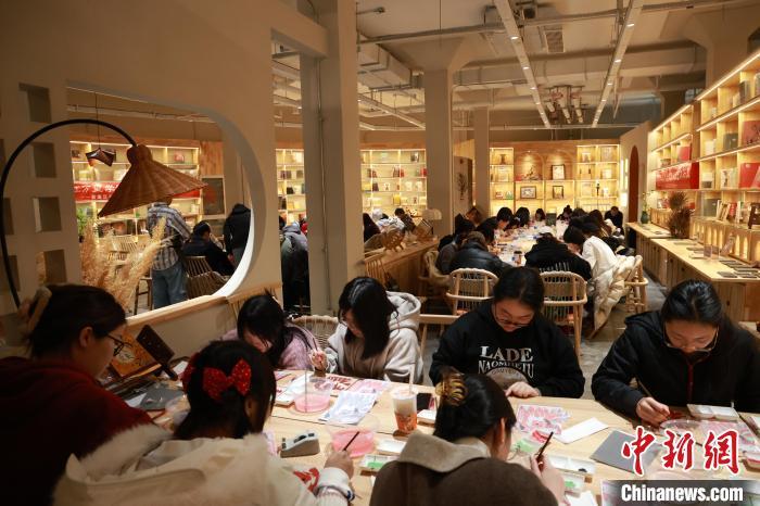 敦煌印局店長蘇婷12日接受中新社記者采訪時說道,敦煌書局的文旅體驗?zāi)J缴钍苡慰拖矏?,每年夏天人山人海。敦煌印局不僅在空間上進行了拓展,容納更多游客;還更加注重為游客提供自主創(chuàng)作產(chǎn)品的服務(wù),強化體驗過程,帶走獨屬于自己的敦煌印記。