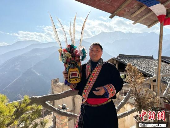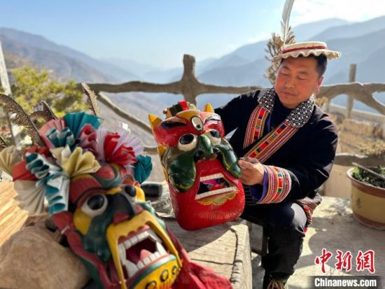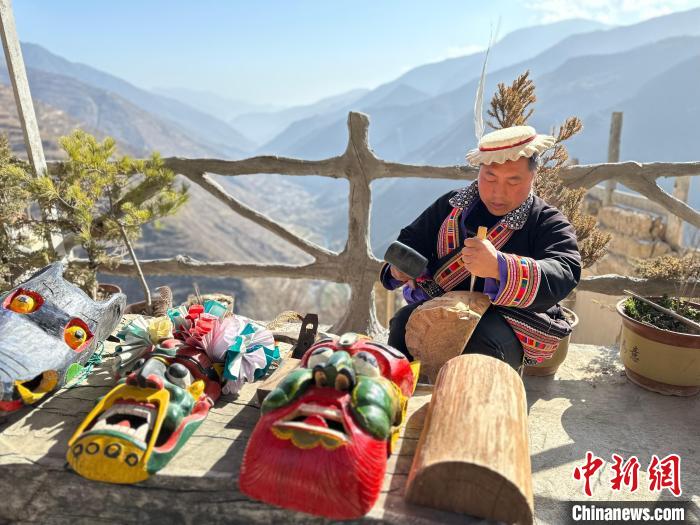雕刻、打磨、上色……甘肅隴南市文縣鐵樓藏族鄉(xiāng)強(qiáng)曲村,白馬人薛剛一家四代人都精于木工。日前中新網(wǎng)記者走訪(fǎng)村子時(shí),薛剛坐在自家院子里,伏案制作池哥晝所用面具。池哥晝是白馬人保留最完整、最具特色民族舞蹈,面具是重要道具之一。薛剛制作的面具不僅用于周邊村子的池哥晝中,而且被廣州、上海等地的客商購(gòu)買(mǎi)收藏。他時(shí)常將自己的想象融入面具中,用心打磨使其更具“靈氣”。他說(shuō),白馬人中從事面具雕刻的手藝人不多,最近他物色了一個(gè)“00后”徒弟,對(duì)方興趣濃厚,希望將這門(mén)手藝保護(hù)傳承好。圖為薛剛在院子里雕刻面具。閆姣 攝