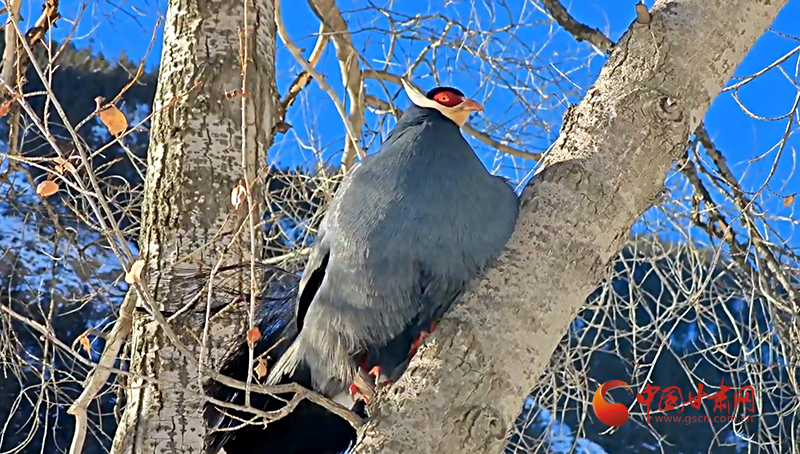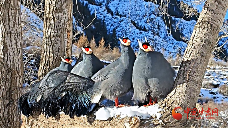 祁連秘境上演藍(lán)馬雞家族雪地“聚會(huì)”