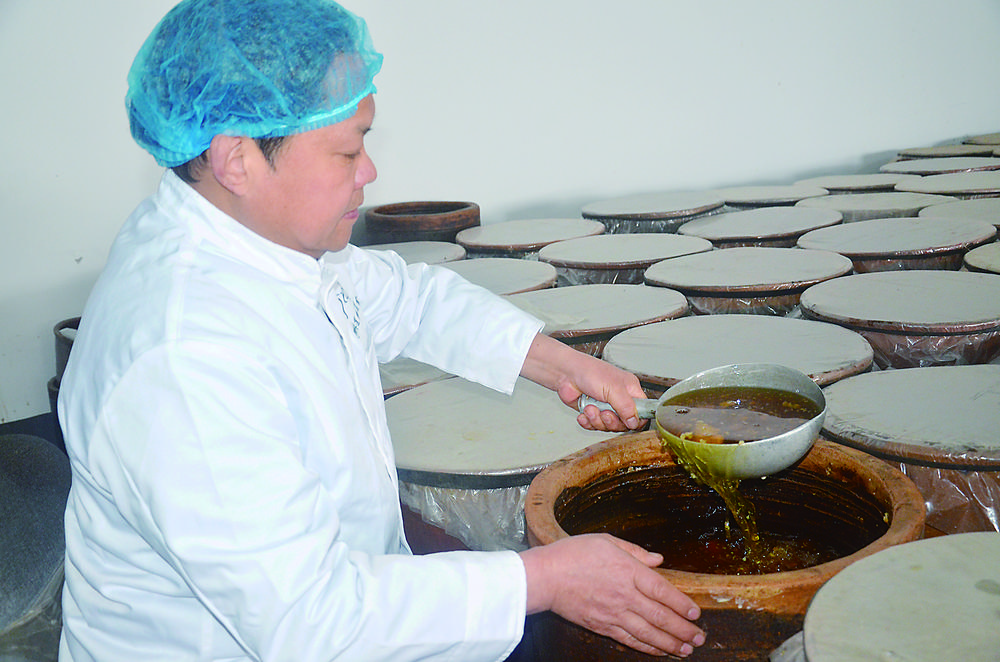 在長期的釀造過程中,河州黃酒有一套獨特的傳授規(guī)程和技術要求,甚至有“傳媳不傳女”的風俗。釀酒過程復雜且耗時,尤其是對溫度、火候的把控,需要豐富的經驗。王建平從小在父親的帶領下傳承老輩人釀酒技藝,逐漸掌握整套釀造工藝流程,在父輩生產和經營的基礎上,繼續(xù)探索創(chuàng)新,綜合各地黃酒優(yōu)點,取長補短,突出河州黃酒醇厚的風格,不斷豐富產品系列。為將自己的技藝傳承下去,他讓兒子王騰和幾名徒弟學習,做接班人,傳承釀造技藝。