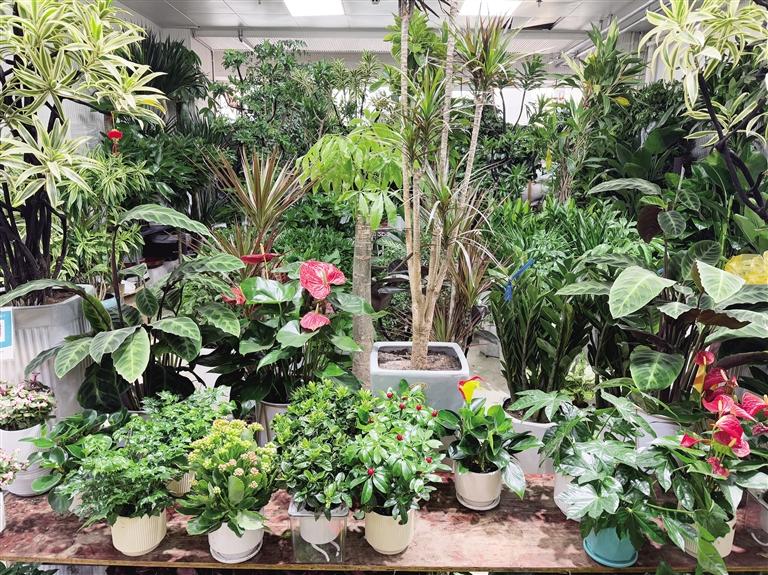 踏著初升的朝陽(yáng),記者來到雁灘花鳥魚市場(chǎng),陣陣植物清香撲鼻而來,所見是一片生機(jī)盎然的綠意,匯合著潺潺流水聲,仿佛置身大型植物園林。