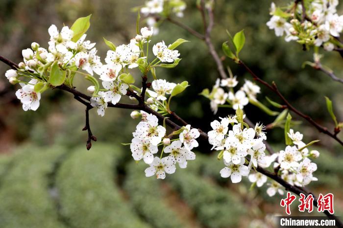 3月16日,廣西三江侗族自治縣八江鎮(zhèn)歸令村六更屯種植的千樹梨花迎春綻放,與青翠茶園、特色民居相映成趣,構成一幅如詩如畫的春日畫卷。當地村民及游客紛紛前來采茶賞花、“打卡”拍照,享受春日美好時光。圖為村民在采春茶。龔普康 攝