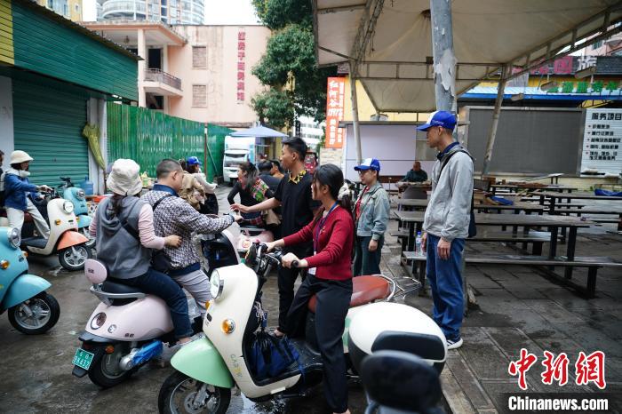 3月16日,云南省紅河州河口縣街頭,數(shù)位越南游客騎著租來(lái)的電動(dòng)車(chē)游玩。中新社記者  劉冉陽(yáng)  攝