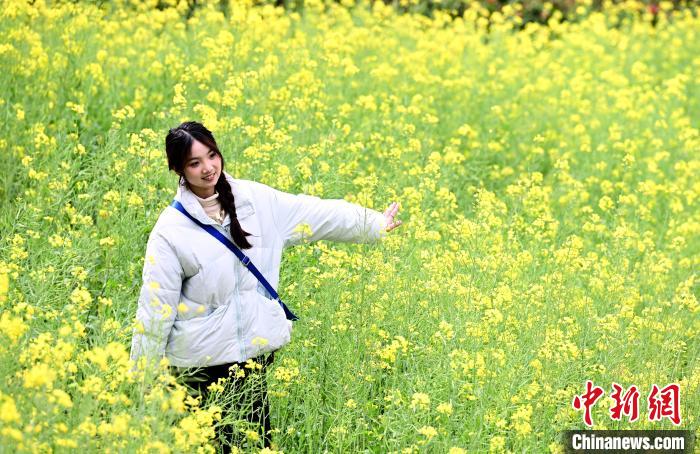 3月16日,游客在公園觀賞彩色油菜花。春日,福州花海公園魯冰花、小蒼蘭、油菜花等鮮花盛放,吸引了許多民眾前來(lái)漫步賞花,享受春天美好時(shí)光。中新社記者 張斌 攝