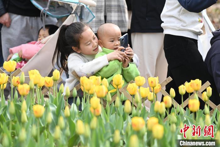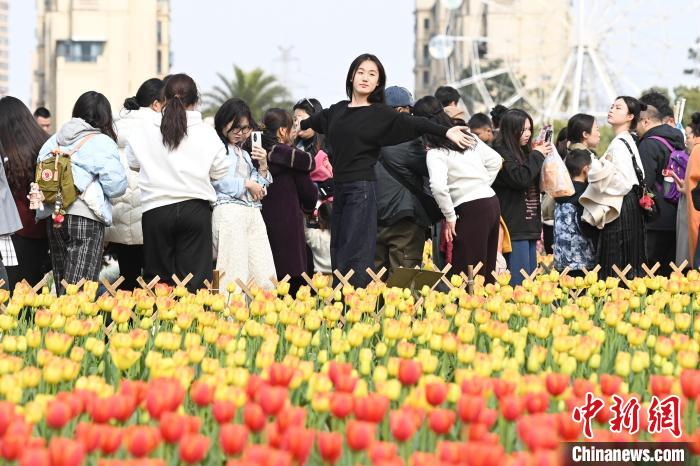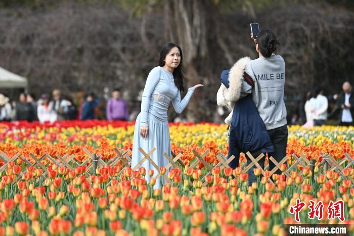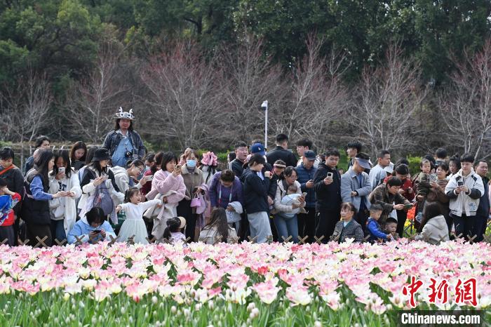 3月16日,位于湖南長(zhǎng)沙的湖南省植物園數(shù)十萬(wàn)株郁金香肆意綻放,五彩斑斕的花瓣交織成一片絢麗花海,引得眾多游人紛至沓來(lái),享受愜意春日。圖為游人置身花叢中。中新社記者 楊華峰 攝