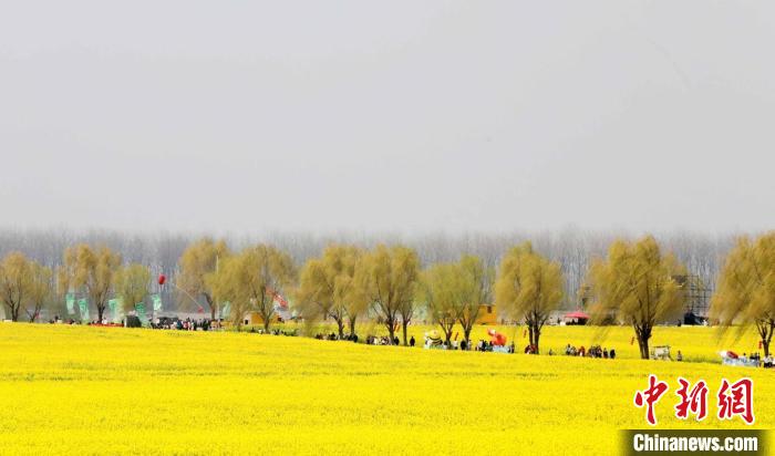 圖為彭澤縣棉船鎮(zhèn)萬畝油菜花進(jìn)入盛花期,吸引眾多游客前來踏青賞花。彭琴 攝