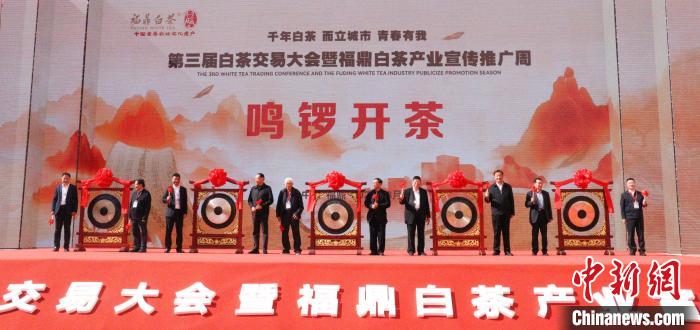 鳴鑼“開(kāi)茶開(kāi)市”,開(kāi)啟第三屆白茶交易大會(huì)暨福鼎白茶產(chǎn)業(yè)宣傳推廣周序幕。 林榕生 攝