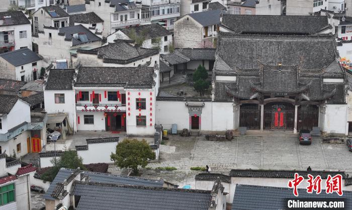 圖為3月30日航拍村中保存完好的古民居。(無人機(jī)照片)中新社記者 韓蘇原 攝