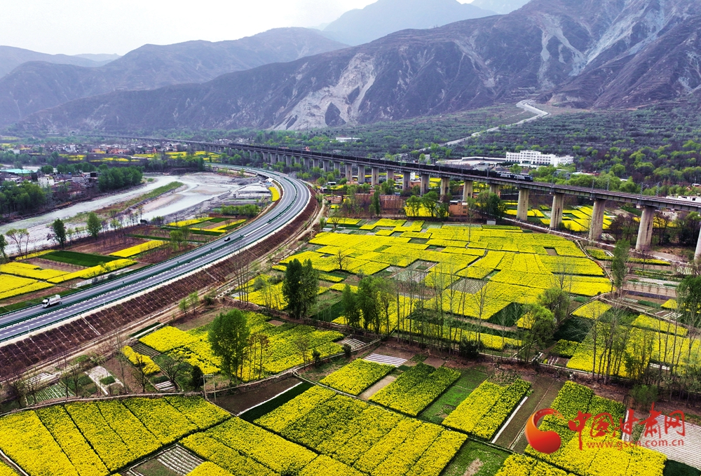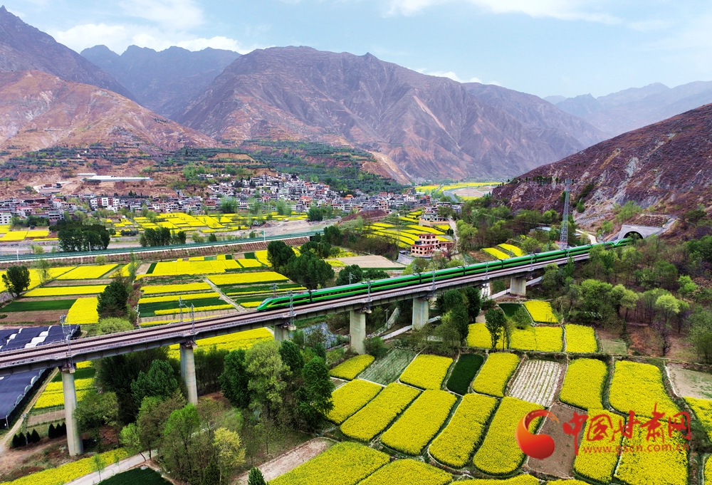 近日,隨著氣溫回升,武都、宕昌白龍江沿岸的油菜花競(jìng)相綻放,迎來(lái)最佳觀賞期,蘭渝鐵路列車在花海中穿梭,宛如一幅絕美的春日畫卷。