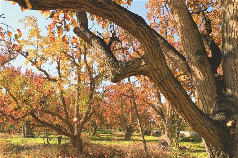 “這是我們梨園的‘樹王’,今年475歲了,歷經歲月洗禮,每年仍能產出2000斤冬果梨。”古梨園保護中心副主任韓磊告訴記者,“現在每棵古樹都有專屬‘保姆’,比我們小時候受寵多了。”