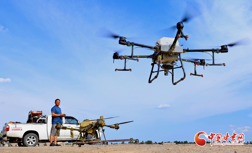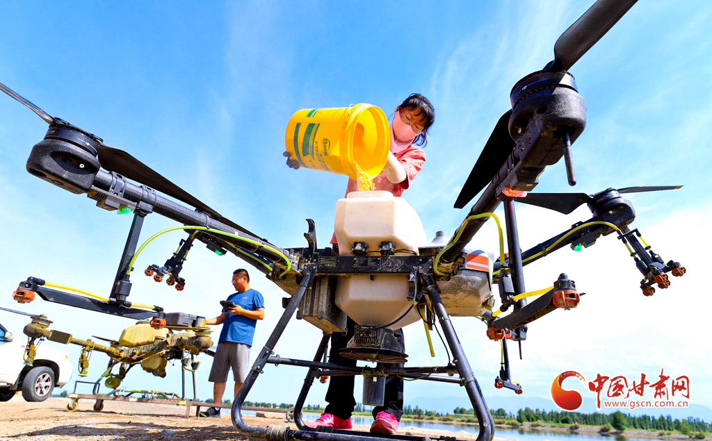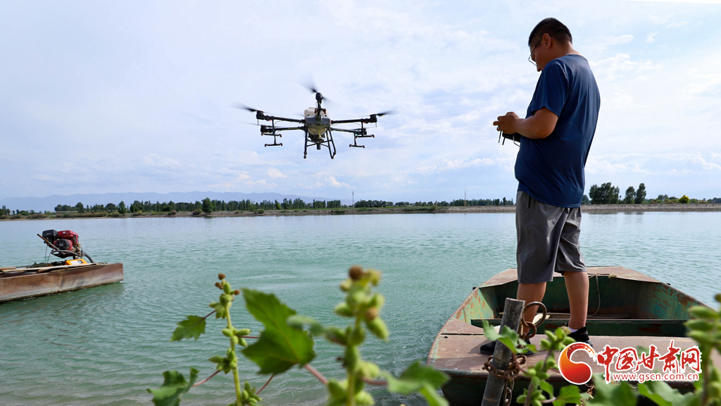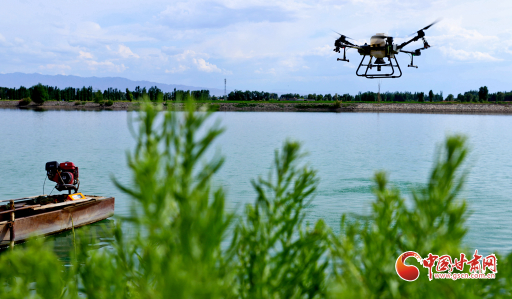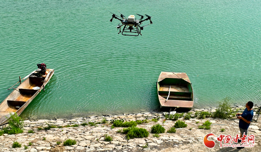 6月24日,在高臺縣夾溝湖水庫螃蟹養(yǎng)殖基地,無人機操作手啟動設(shè)備,載滿飼料的無人機沿預(yù)設(shè)航線在800多畝螃蟹養(yǎng)殖基地上空精準投喂。