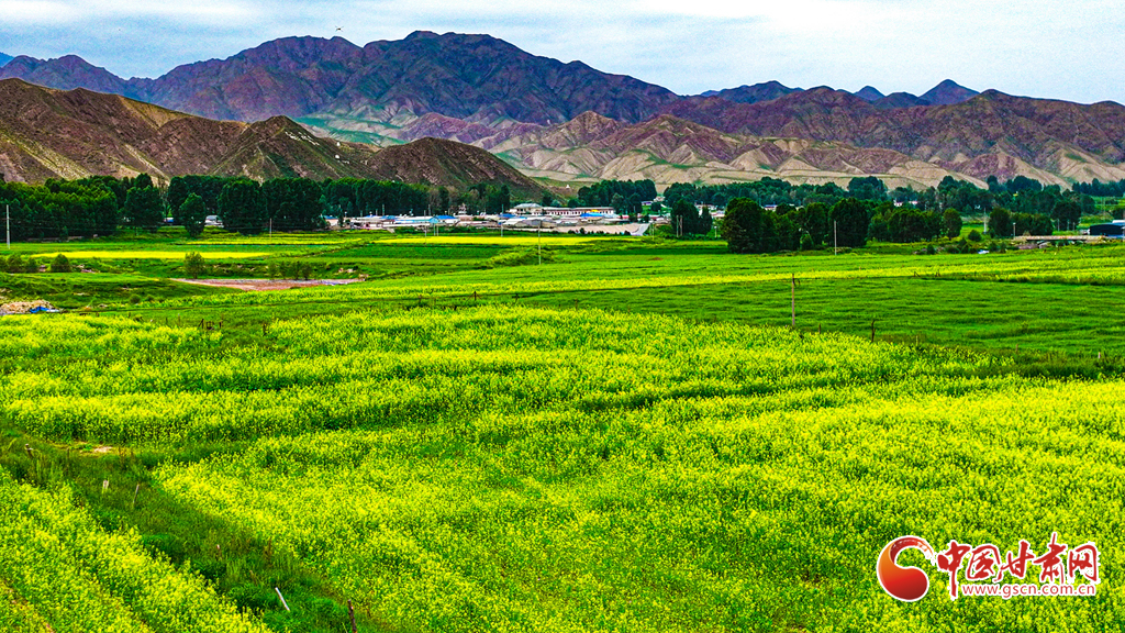 7月14日,一場小雨過后,張掖市肅南裕固族自治縣皇城鎮(zhèn)泱翔片區(qū),萬畝麥田泛黃、油菜花盛開如金。微風吹拂,麥浪翻涌花香浮動。遠眺祁連山巍峨聳立,近觀民居錯落有致,構成一幅和諧的畫卷。