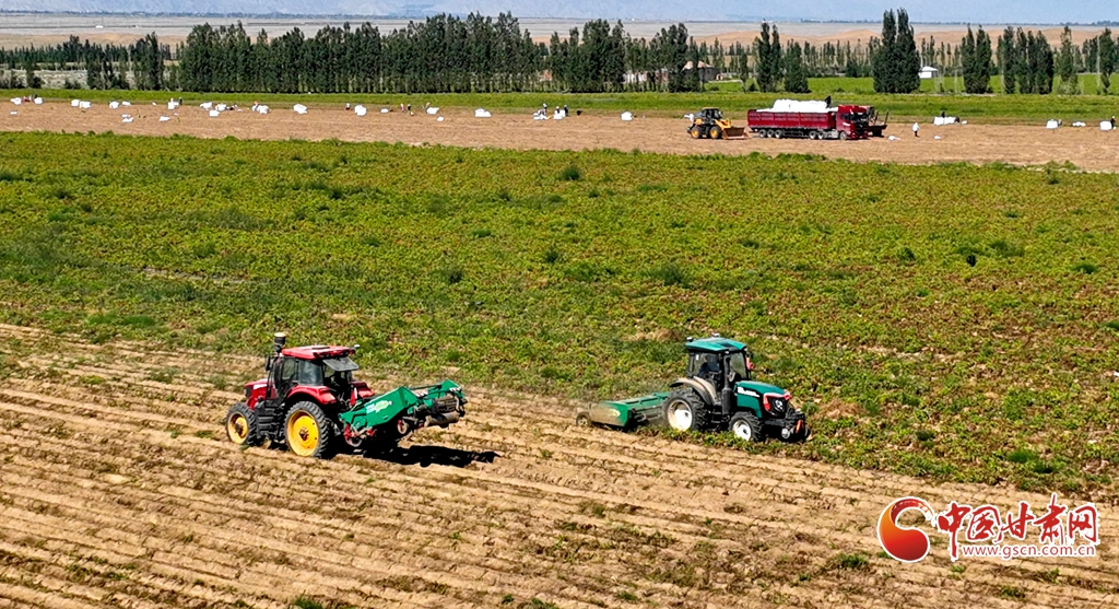 8月14日,祁連山下的張掖市高臺縣新壩鎮(zhèn)馬鈴薯種植基地一片繁忙。收獲機在田間穿梭,碩大的馬鈴薯破土而出,工人們正加緊進行撿拾、分揀和裝車。