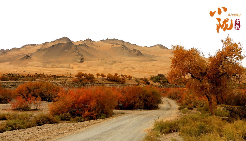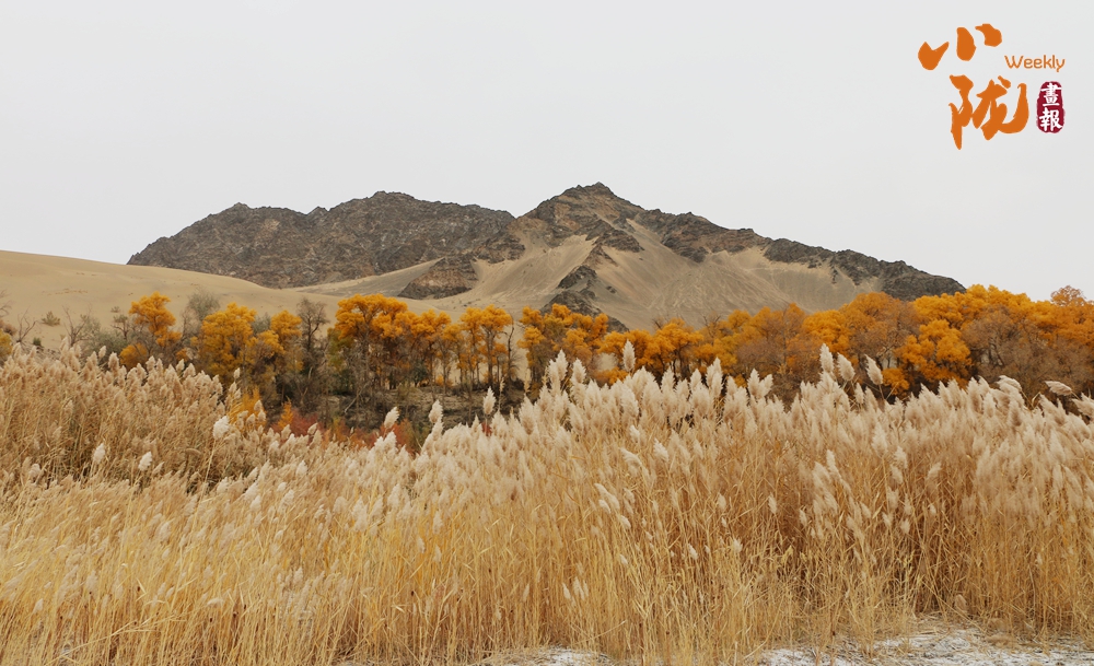 連綿起伏的沙丘如金色浪潮,環(huán)抱著一汪碧水,藍天白云倒映其中。金黃的胡楊在秋風(fēng)中輕輕搖曳,宛如一群身著華麗服飾的衛(wèi)士,默默守護著這片沙漠中的綠洲。