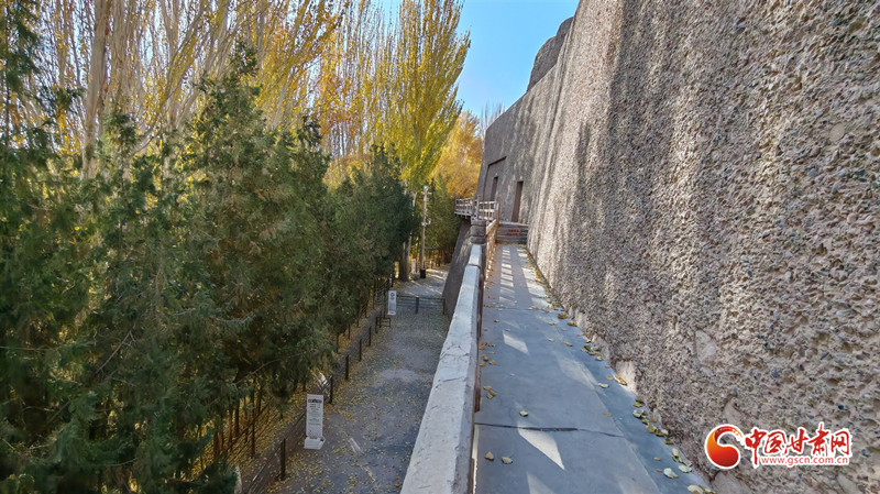 當(dāng)黨河的崖壁被清晨的暖陽披上金光,那些斑駁色彩仍在回答——中國(guó),就在這多元共生、美美與共的千年色譜里,就在這一筆一畫勾勒、千年延續(xù)不斷的包容里。(敦煌研究院供圖)