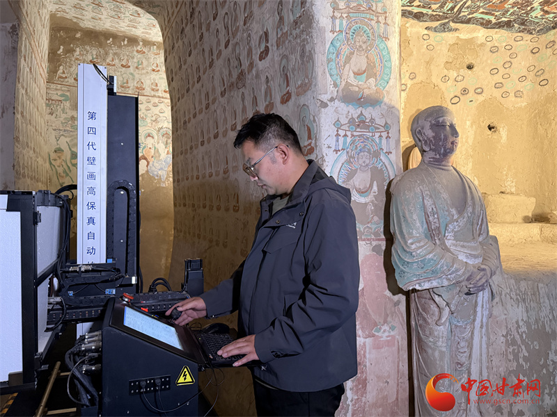 10月31日,由中央網(wǎng)信辦網(wǎng)絡(luò)傳播局、國(guó)家文物局政策法規(guī)司指導(dǎo),中國(guó)互聯(lián)網(wǎng)發(fā)展基金會(huì)特別支持,甘肅省委網(wǎng)信辦、省文物局主辦,張掖、嘉峪關(guān)、酒泉市委網(wǎng)信辦與敦煌研究院、中國(guó)甘肅網(wǎng)、鳳凰網(wǎng)甘肅頻道共同承辦的“何以中國(guó)|壁畫里的中國(guó)·當(dāng)AI遇見(jiàn)小飛天”網(wǎng)絡(luò)主題宣傳活動(dòng)走進(jìn)敦煌研究院,采訪了在莫高窟拍壁畫的攝影師喬兆福。