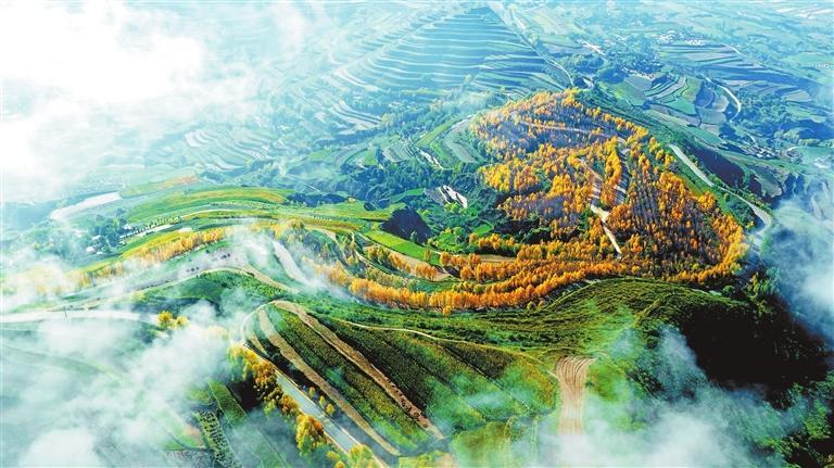 秋日的隴西縣柯寨鎮(zhèn)虎家屲村,云霧似輕紗裹滿山巒,村落與林帶隱入煙靄之間——黃土高原上世代耕耘出的“大地藝術”,正將自然意趣與煙火溫情,暈染成一幀秋日的水墨詩行。