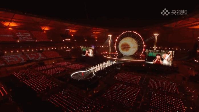 光,也是這場(chǎng)敘事中無(wú)聲的語(yǔ)言。燈光總監(jiān)董江從鴻蒙系統(tǒng)的開(kāi)機(jī)動(dòng)畫中汲取靈感,將極具辨識(shí)度的“星環(huán)”造型貫穿整個(gè)場(chǎng)館空間。設(shè)計(jì)團(tuán)隊(duì)不僅用數(shù)百臺(tái)燈光設(shè)備在舞臺(tái)上空構(gòu)建了一個(gè)直徑31米的超級(jí)光環(huán),更在體育場(chǎng)內(nèi)豎立起8組高達(dá)24米的立體燈光塔,讓每一位觀眾都被籠罩在“在一起”的視覺(jué)敘事之中。據(jù)總導(dǎo)演田梅介紹,那打動(dòng)了無(wú)數(shù)網(wǎng)友、點(diǎn)綴在觀眾席上的四萬(wàn)盞燈球,并非輕易鋪就的背景,而是歷經(jīng)超百位工人三次接力安裝、反復(fù)調(diào)試才得以呈現(xiàn)的呼吸光海。最初,這一設(shè)計(jì)曾因執(zhí)行難度而面臨調(diào)整,但在總導(dǎo)演田梅的堅(jiān)持下,最終被完整保留。在她看來(lái),這片星海是對(duì)盛典主題內(nèi)核的生動(dòng)詮釋:“‘在一起,就可以’不僅是一句口號(hào),更是對(duì)這個(gè)時(shí)代最溫暖的注腳。它告訴我們:再遙遠(yuǎn)的夢(mèng)想,也終將在并肩同行中,變得觸手可及。”隨著節(jié)目播出,燈球呈現(xiàn)出“在一起,就可以”“鴻蒙星光盛典”等字符,明亮而浪漫。四萬(wàn)星光分散在每一張座椅上,如同散落在千行百業(yè)、千家萬(wàn)戶中的每一個(gè)開(kāi)發(fā)者與用戶;它們又能連成一片星海,展現(xiàn)出“在一起,就可以”的力量。