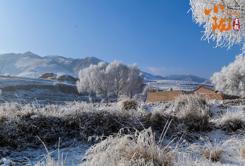 山下的屋舍靜臥于無(wú)邊的潔白中,淺藍(lán)天色漸次暈染,蒼灰山脊如墨筆勾勒,山川草木皆成了畫(huà)中疏淡的筆意,低訴著悠長(zhǎng)的冬韻。
