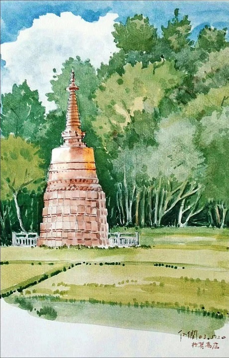 孫儒僴繪制的莫高窟小牌坊。受訪者供圖