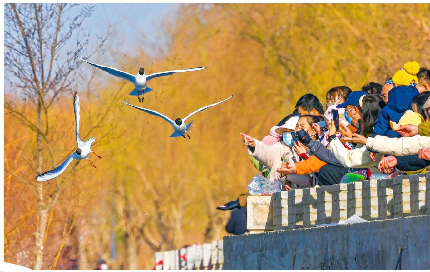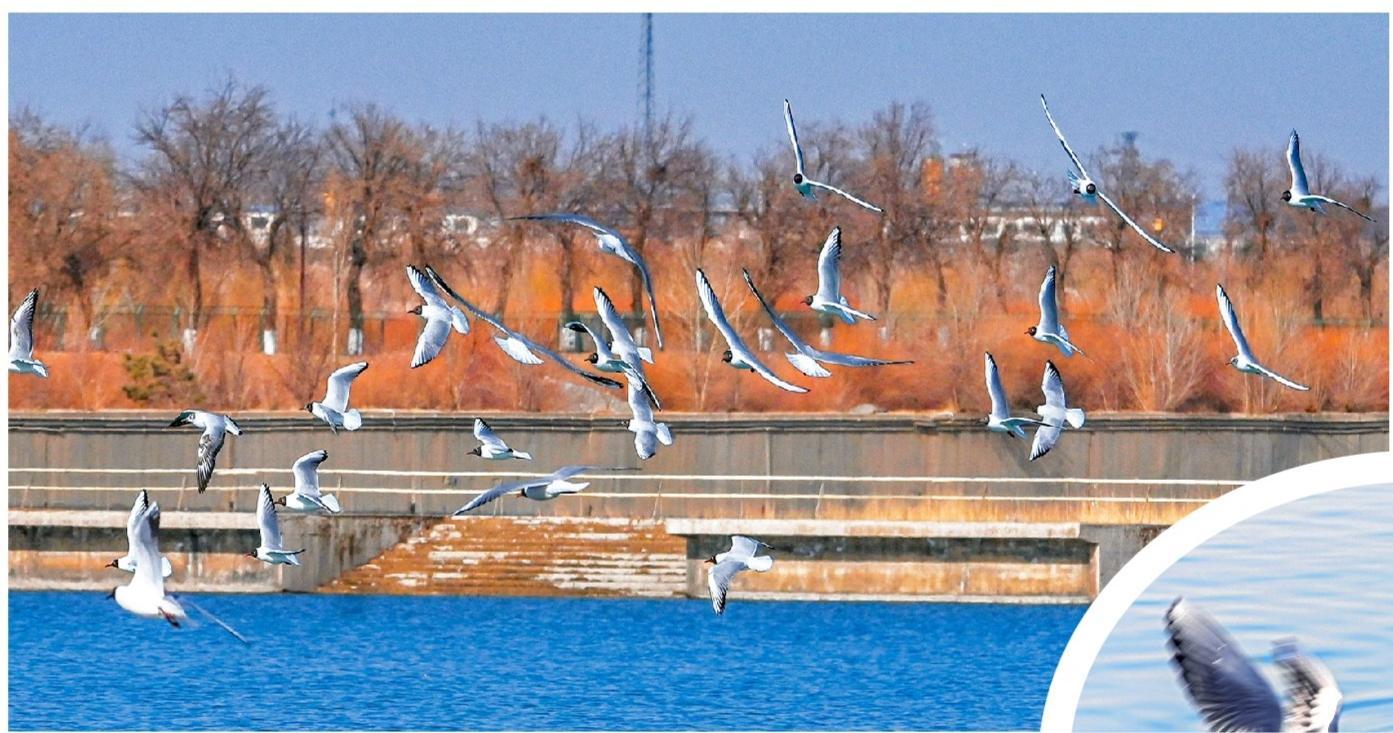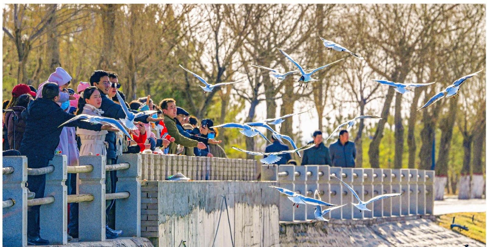 戈壁雄關迎鷗鳥,羽翼翩翩贊綠洲。連日來,大批鷗鳥分批飛抵我市討賴河生態(tài)文化景區(qū),或舒展輕盈舞姿與岸邊市民互動,或在氣盾壩上“列隊”小憩,或結伴翱翔感受春日暖陽,盡情享受著我市持續(xù)向好的生態(tài)環(huán)境。(照片由融媒體中心記者 李巍 攝)