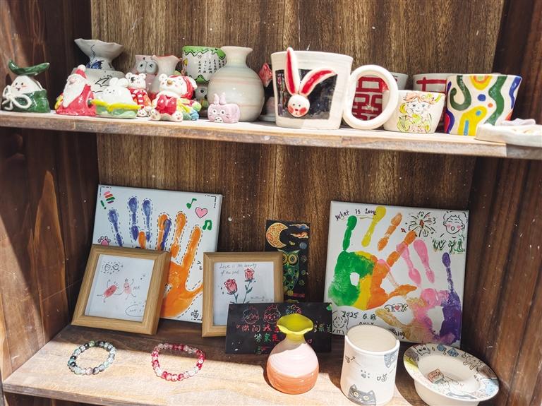 相比之下,陶藝更考驗耐心。“陶藝看著簡單,其實上手并不容易。”工作人員說,一個杯子從揉泥、拉坯到塑形、修整,整個過程大約需要三到四個小時。如果需要燒制、上釉、成品取貨,等待時間會更長。即便如此,依然有不少愛好者愿意沉下心來,感受泥土在指尖變化的樂趣。