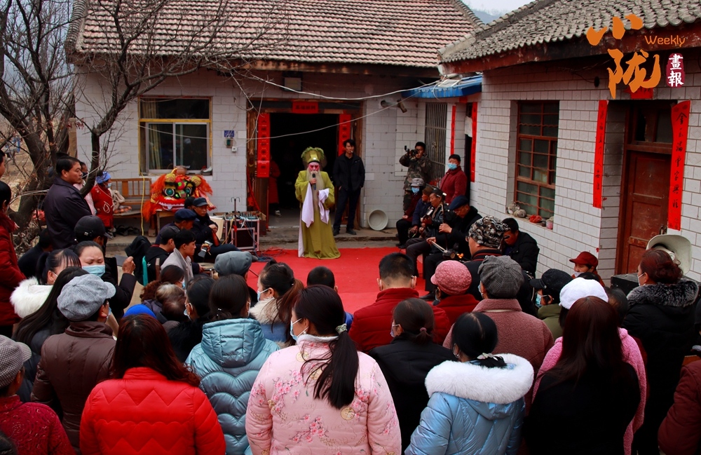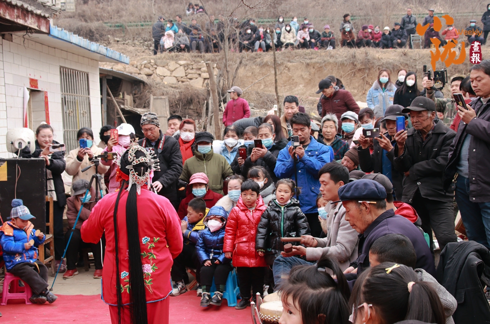 臺前演員投入表演,臺下不少村民舉著手機記錄這熱鬧場景。古樸的民居、山坡上攢動的人頭,伴著戲曲的唱腔,滿是傳統(tǒng)民俗活動的鮮活勁兒,盡顯民間藝術(shù)的感染力。