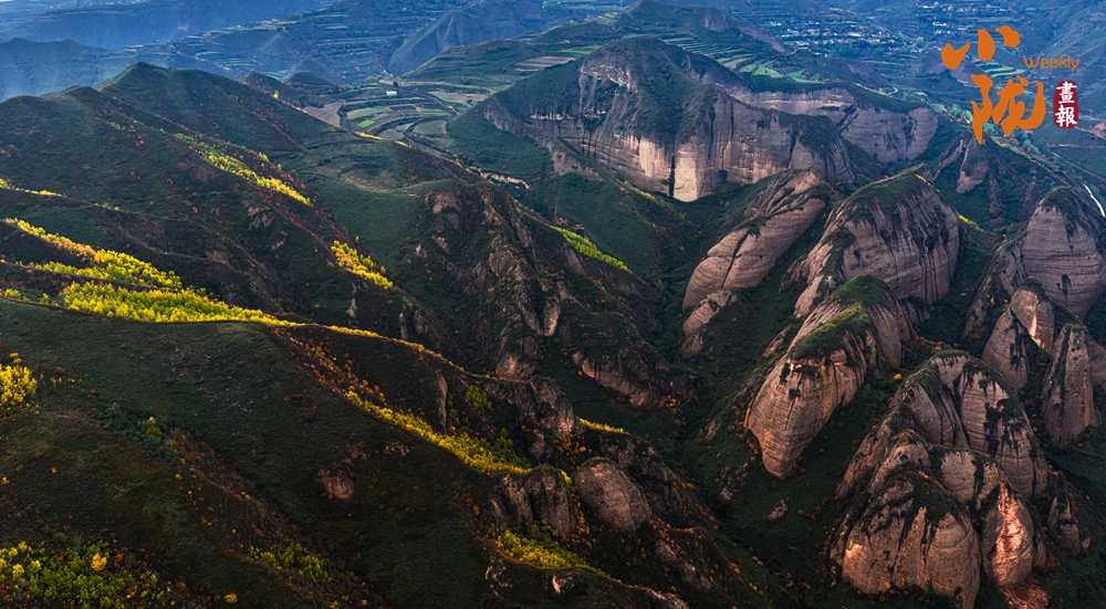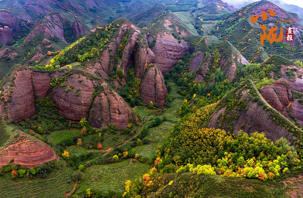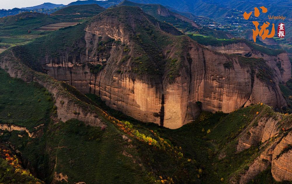 遠(yuǎn)遠(yuǎn)望去,山谷間、山巖上,一簇簇、一片片墨綠色草叢,將丹霞的紅、初冬的彩、山體的褐輕輕暈染,構(gòu)成一幅美麗的冬日美景。